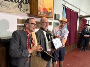 El Secretario Carlos Jorge entregó a Regina copia del decreto declarando de interés municipal el evento, y también recibió el titular de Acuyai un presente de la Federación de Centros Tradicionalistas de la Provincia de Buenos Aires.