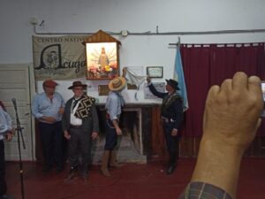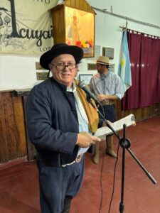 Agradeció a Milagros Iriarte por el diseño de las obras realizadas en la sede, y en el final de su alocución expresó: “nosotros recibimos un legado de 75 años, recibimos una sede, un campo donde ha trabajado tanta gente que hoy no se nombra. Respetamos a trabajamos a destajo, todos ad honorem, para que esto se mantenga y se conserve. Le pido a la comunidad, que hoy por la evolución y el progreso, no podemos decirle a un chico te tiene que gustar la tradición o Halloween, pero sí podemos hacer es darle docencia, defender la tradición y presentarle todos los recursos necesarios para que tenga contacto con nuestra bandera celeste y blanca, de esa manera serán ellos los que seguirán el camino que nos dejaron nuestros viejos”.
