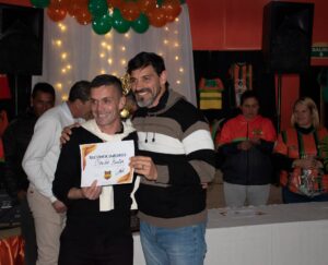 Además, fueron reconocidos Claudio “Cati” Bustos por su trayectoria, y el futbolista Agustín Gallo, que hoy no viste la casaca del naranja, pero que aportó mucho en su paso por la institución. Y hubo una entrega por demás emotiva en memoria de Mónica Pertino, fallecida recientemente, quien trabajó mucho por Los Naranjos.