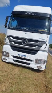 Hoy a la tarde, sobre la Ruta Provincial 41, a unos 50 metros del puente de Las Garzas, entre Lobos y Navarro, se produjo un choque entre un camión Mercedes Benz, patente AE900HE, que llevaba alimento para canes, circulando en dirección Lobos-Navarro, conducido por Marcelo Tomás Aragón, domiciliado en Lanús; y un Renault Clío. Dominio KXY132, que transitaba en sentido Navarro-Lobos, y que conducía Silvia Susana Salamanca, de 62 años, a quien acompañaba Juana Palomino, de 87 años, ambas domiciliadas en Santa Fe.