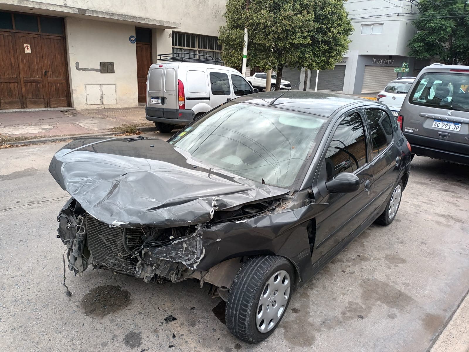 Por causas que se desconocen, chocaron un  Fiat Palio color gris, que circulaba por Perón conducido por Federico Jorge Gregori, domiciliado en Lobos, como único ocupante; y un Peugeot 206 negro que iba por Del Mármol con cuatro ocupantes, y era guiado por Mateo Pérez Lizazo, domiciliado en Cañuelas.