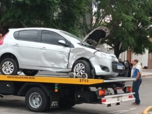 Cerca de las 6 de la mañana de este domingo, se produjo un violento impacto entre dos autos, en la céntrica esquina de Perón y Del Mármol.