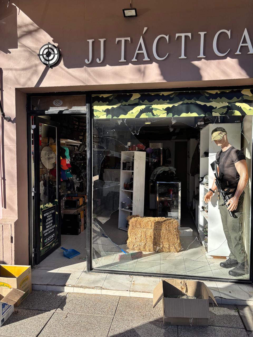 Otra vez, el comercio “JJ Táctica”, de Hiriart 85, de indumentaria y accesorios, en pleno centro de la ciudad, fue blanco de los delincuentes.