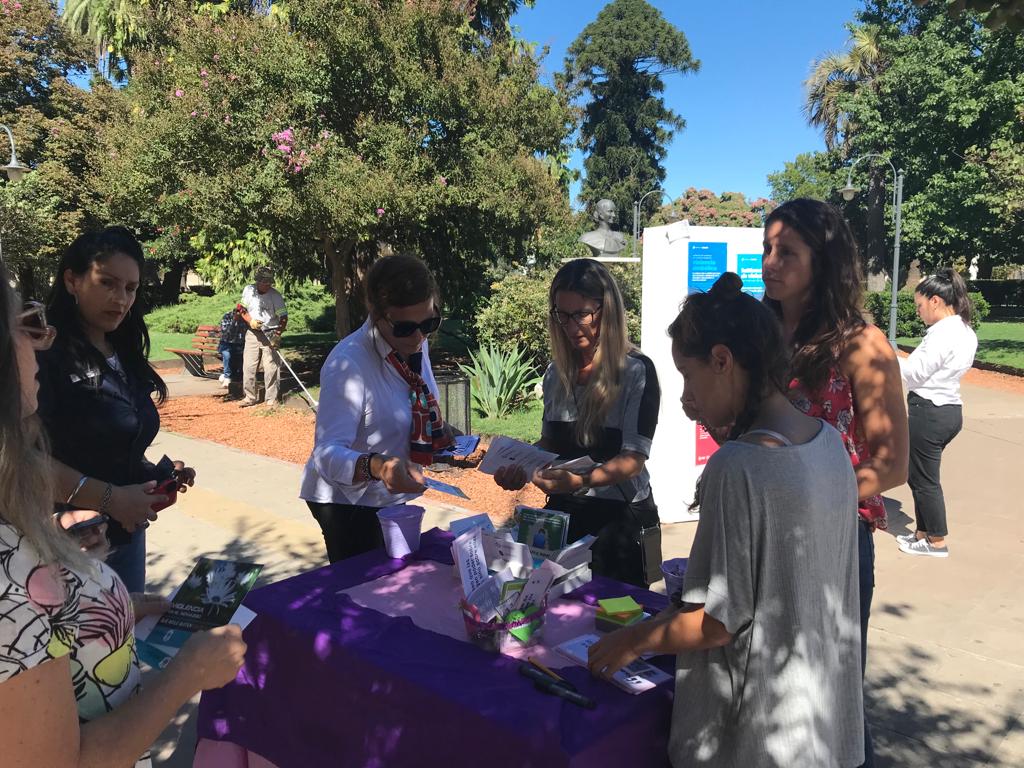 «Estamos tratando de entregar información, interactuar con la gente que se quiera acercar, mediante folletería pretendemos que incorporen información, y abordamos otras cuestiones de la sociedad como maltrato infantil, violencia en el noviazgo y acoso”, dijo la Comisario Maite Roldán, jefa de la Comisaría de la Mujer.