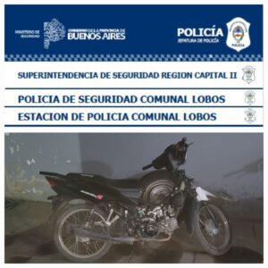 En la tarde del viernes 30, personal de la Comisaría Primera, secuestró una moto abandonada por un desconocido, en calle 9 de Julio entre Ajó y Barracas.