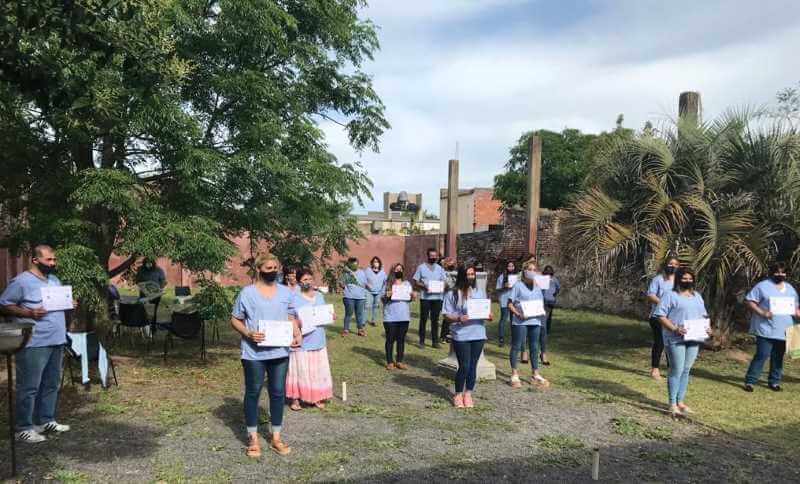 Tuvo lugar hoy en la sede del Centro Universitario Regional Lobos, la jornada de examen final y posteriormente, en el patio abierto, el acto de entrega de certificados del curso de Cuidadores Gerontológicos que dictó a lo largo del año una organización oficial de La Plata, con el auspicio de Cáritas Lobos y la Oficina de Empleo del Municipio.
