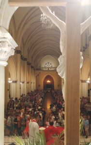 Comenzó ayer la Semana Santa para la cristiandad, y una multitud acompañó la celebración central del Domingo de Ramos, que se inició en la Plaza Tucumán, Las Heras y Villanueva, con la bendición de los ramos y la procesión hasta el Templo, que estuvo colmado en su totalidad, para la Misa que presidió el Párroco Mena, concelebrada por el Padre Roberto Giecco y el Padre Sebastián Vallejos, Capellán del Colegio FASTA.