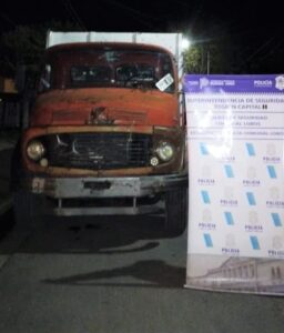 En la madrugada del sábado pasado, un móvil policial que recorría la ciudad, advirtió que un camión Mercedes Benz realizaba maniobras temerarias en calles Soldado Rodríguez y Castelli.