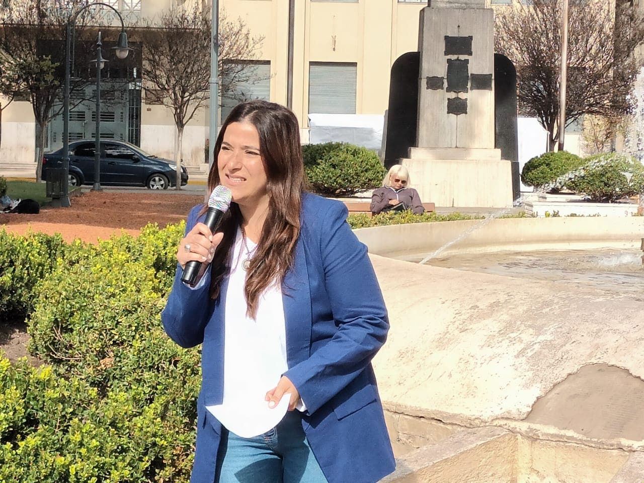 Milagros Moya lanzó hoy su pre-candidatura a Intendente con el Frente “Amor por Lobos”, ante más de 100 personas reunidas en la Plaza 1810.