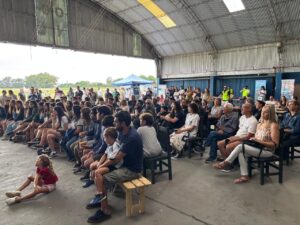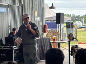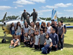 Posteriormente autoridades y público, cada vez más, se trasladaron al hangar donde el Comodoro retirado Luis Briatore, Veterano de Malvinas, ofreció una charla motivacional impecable, seguida con mucha atención por los adultos y por estudiantes de nivel secundario de Lobos.