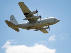 Lo que siguió potenció la emoción cuando apareció a la vista de todos el emblemático Hércules C-130, insignia de la Guerra de Malvinas, iniciando el lanzamiento de los paracaídas, primero los automáticos y luego los manuales, con paracaidistas de Fuerza Aérea, del Ejército, de Gendarmería Nacional y deportivos de Lobos junto con paracaidistas de alta infiltración de las Fuerzas Armadas.