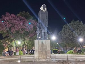 Federica Citaroni fue este año la encargada de colocar el pañuelo blanco en la figura de la Madre del monumento ubicado en el centro de la Plaza 1810, cerrando así la Vigilia.