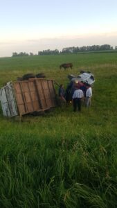 Una camioneta con un tráiler en el que trasladaban tres caballos, se despistó volcando en el kilómetro 87 de la Ruta Nacional 205.